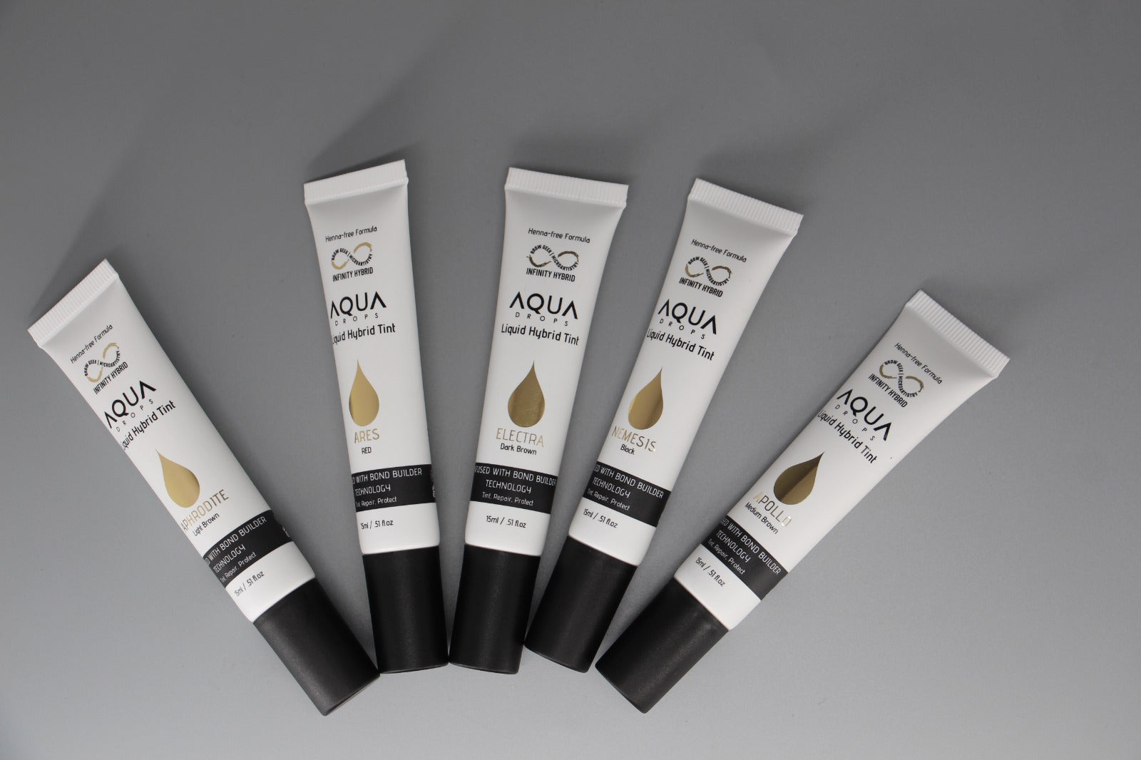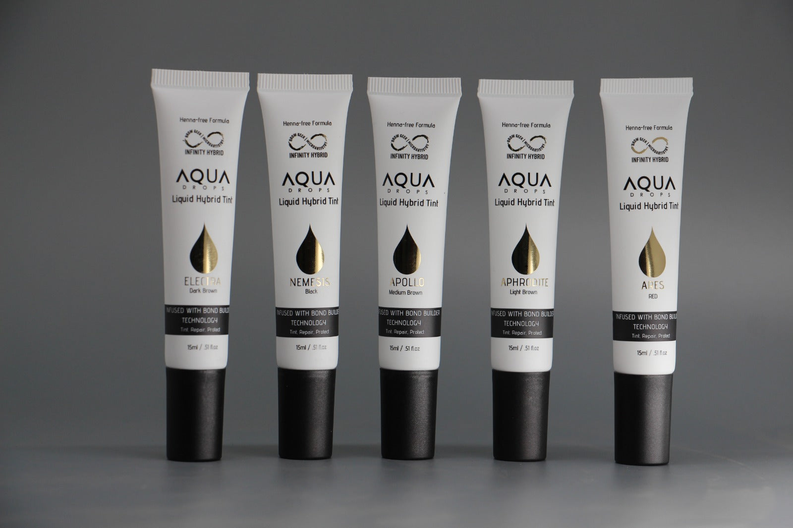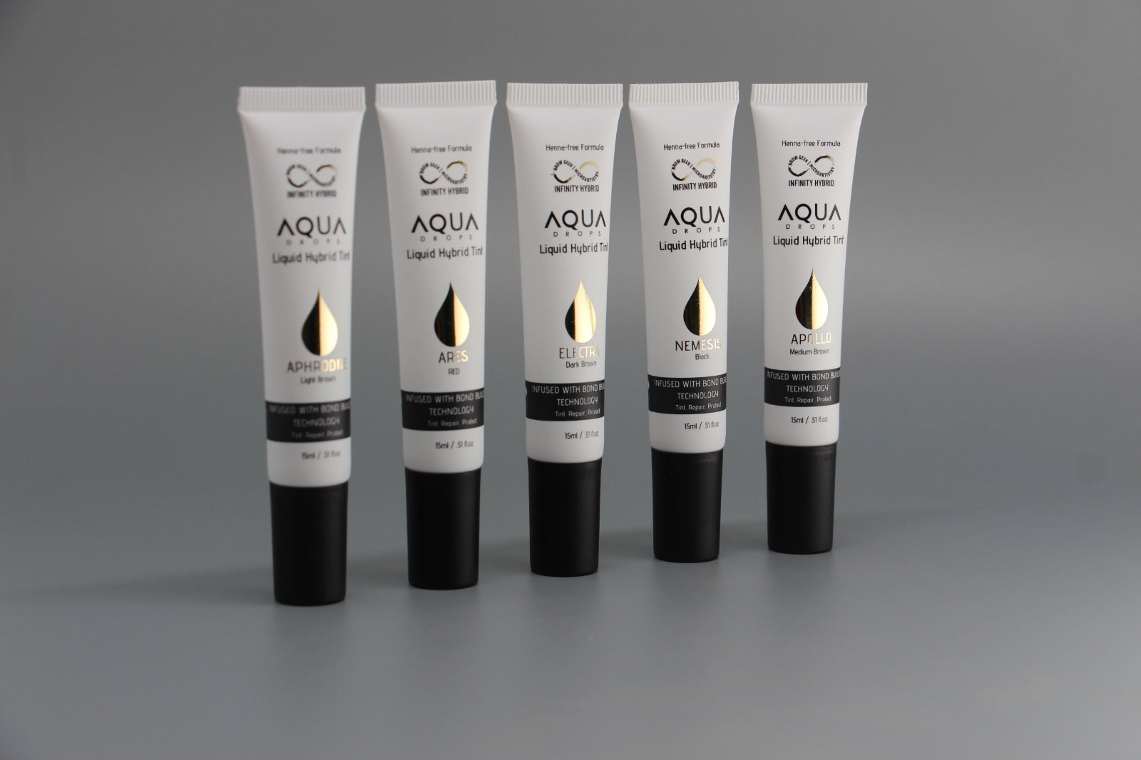 Our Infinity Aqua Drops is the world’s first henna-free liquid hybrid stain with bond-building properties. It is our patent-pending henna-free formulation—with hair bond building peptides infused in the groundbreaking formula.